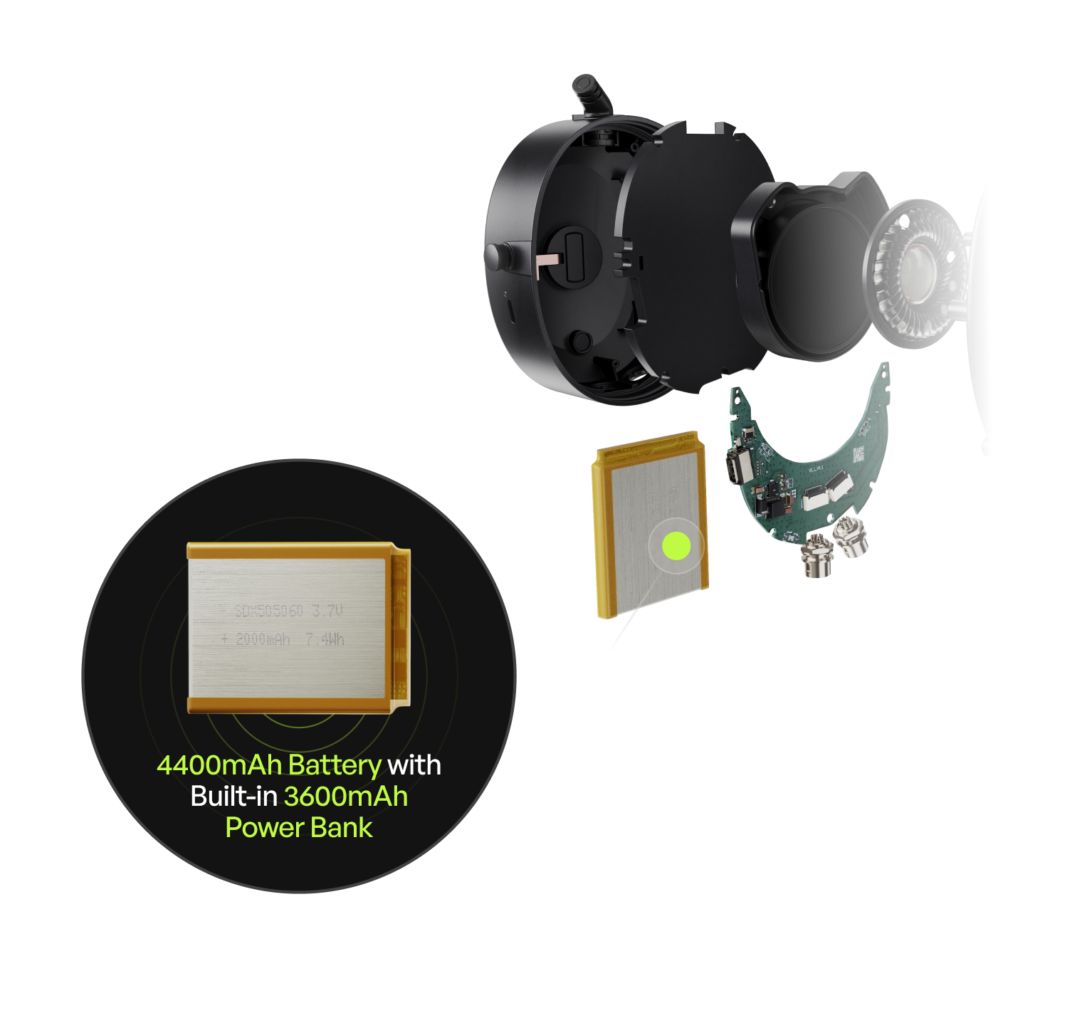 Stay powered up with a robust 4400mAh battery and a built-in 3600mAh power bank for device charging. Designed to support extended use, ensuring you stay connected all day.